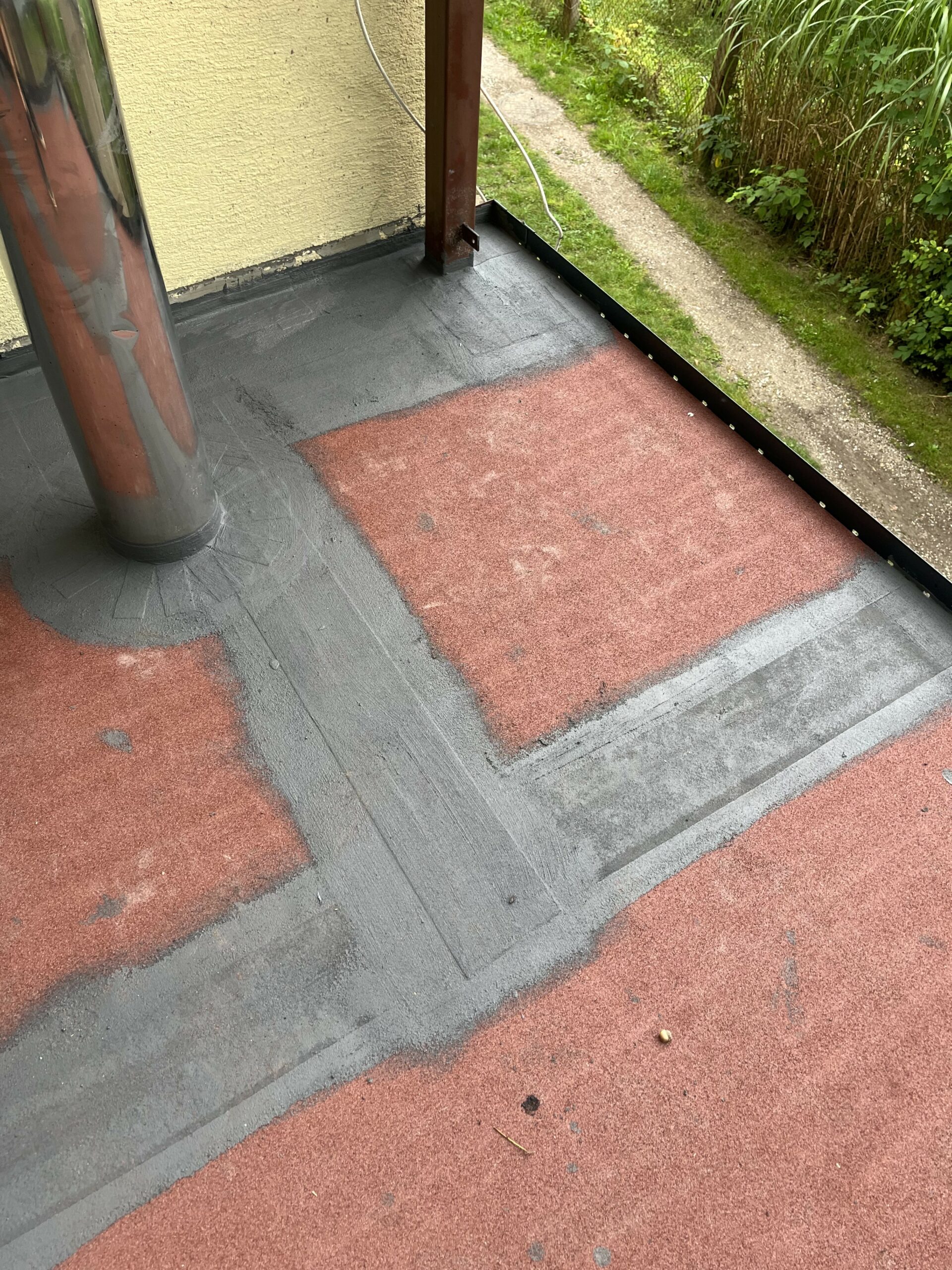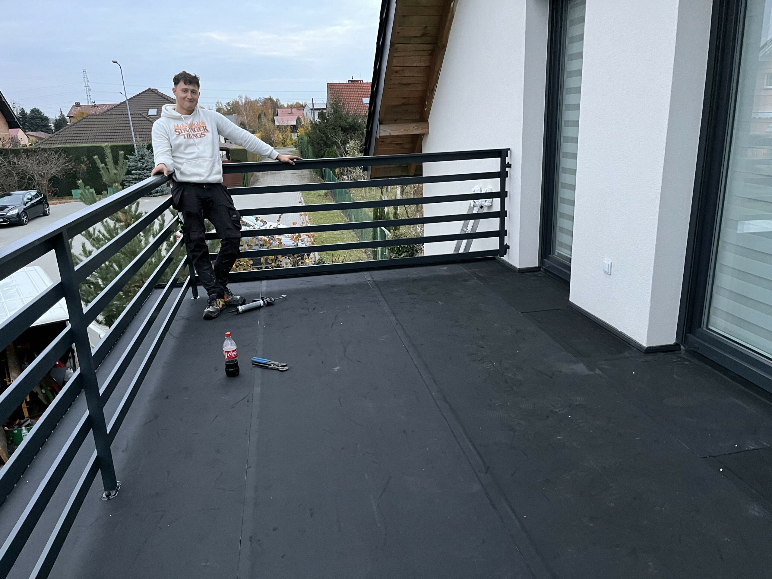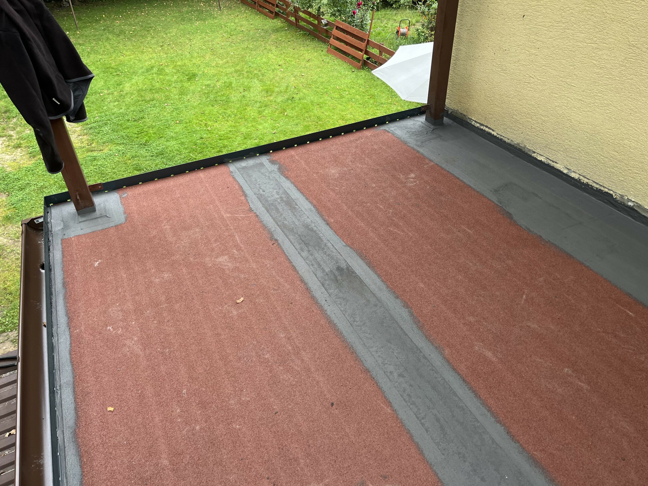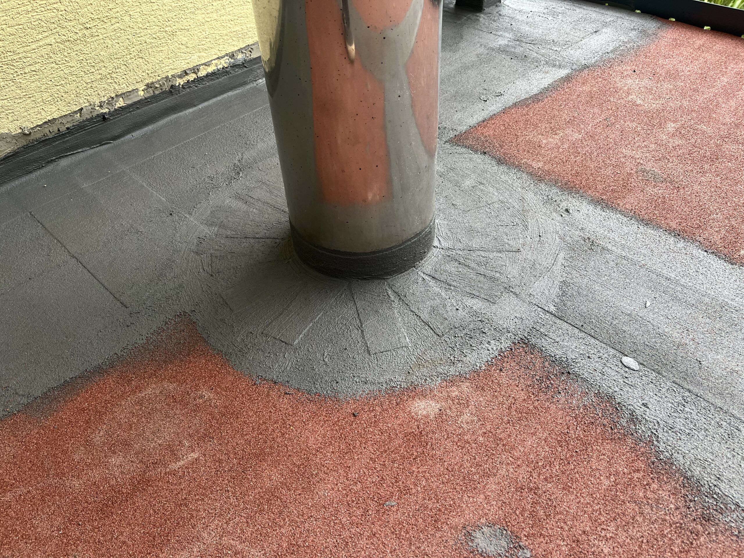 Pełna hydroziolacja balkonu membraną Resitrix EPDM, dodatkowe uszczelnienie opasek przyściennych.